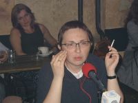 Валерий Панюшкин: В какой-то степени это не то что стыд, а это некоторое специальное чувство, которое возникает, когда приходишь в какой-нибудь детский дом или в центр по реабилитации умственно отсталых детей, что-то такое. Не то, чтобы я непосредственно виноват в этом, и не то, чтобы мне как бы стыдно, но какого-то черта я хожу тут в ботинках за 150 долларов, а они тут из майонезных баночек компот пьют. Что-то вот такое действительно есть, и это, пожалуй, не тема для шуток. Я прекрасно знаю это ощущение, когда приезжаю в Петербург - и очень хочется написать что-нибудь про войну, потому что когда едешь по какому-нибудь Сампсоньевскому проспекту, ну, понятно, что вот только что был артиллерийский обстрел. Чуть-чуть в сторону от только что, впрочем, отремонтированного центра - и возникает ощущение какого-то совершенно не обустроенного города: забыли подвести продовольствие или там... ну, что-то случилось, надо что-то делать. Маша Гессен: Вообще, интересный вопрос. Только что прошедшие праздники, юбилей Петербурга как-то воссоздал вот эту всю историю. Валерий Панюшкин: Я сейчас такую вещь в городе видел. Буквально с Невского уходишь, не помню точно, где, но мне просто специально этот дворик показали. Заходишь в такой типичный петербургский двор, вот эти вот... Ира Вальдрон: Колодец называется. Валерий Панюшкин: Да, как у Достоевского, все как надо: вот эти вот стены высокие, все. Однако же весь двор застелен тротуарной плиткой, посажены два дерева, какие-то цветочки в клумбе, и нет огромного мусорного бака и кошек. Совершенно страшно смотреть на это, непонятно, что это, но потом все объясняется. Когда приезжают гости города, так это есть такой специальный дворик, куда их отводят и говорят: "А вот классический петербургский двор-колодец". (Общий смех) Елена Фанайлова: Да, без кошек ужасно грустно. Ира Вальдрон: И еще старуха-процентщица: Елена Фанайлова: У меня возник вопрос к Александру Каменскому, собственно, после первой части Валериного выступления. Шутки шутками, а у меня такое чувство, что человек, который приезжает в Петербург, Ленинград, как бы мы его не называли, он все время думает о русской истории. Комплекс идей, связанных с блокадой, комплекс идей, связанных с XVIII веком, с XIX веком, он как-то, мне кажется, у любого культурно вменяемого человека рано или поздно всплывает, и он начинает работать и фактически даже перекрывать вот эту картинку, которую человек видит ежедневно. Я, например, помню, что в один из своих первых приездов в Петербург я шла по этим прямым улицам и думала, как легко было чекистам брать людей, которые шли по этим улицам. Очень простая схема: очень легко было чекистам подходить, брать под белые ручки: Ира Вальдрон: Проходные дворы. Елена Фанайлова: Ну, через проходные дворы можно было убегать, да? Я тогда проходных дворов не знала, поэтому... Ира Вальдрон: Но никто не убегал. Елена Фанайлова: Самое странное, да, что никто не убегал. Все-таки я обращаю внимание всех собравшихся к Александру Каменскому и прошу его как-то отреагировать на это мое впечатление. Александр Каменский: Наверное, у историков какое-то свое восприятие этого всего. И поэтому если ты занимаешься, особенно профессионально, чем-то, связанным с какими-то людьми, жившими в XVIII веке, то тебе интересно посмотреть, на какой улице они жили, как выглядит этот дом, если он еще стоит т